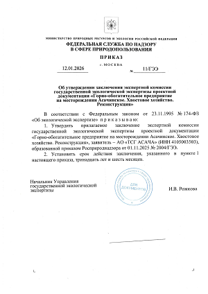 Получено положительное заключение государственной экологической экспертизы (г. Москва) на проектную документацию «Горно-обогатительное предприятие на месторождении Асачинское. Хвостовое хозяйство. Реконструкция».