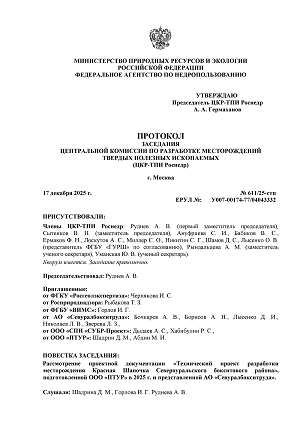 Получено согласование ЦКР-ТПИ Роснедр (г. Москва) на проектную документацию "Технический проект разработки месторождения Красная Шапочка Североуральского бокситового района", подготовленной ООО "ПТУР" в 2025 г и представленной АО "Севуралбокситруда".